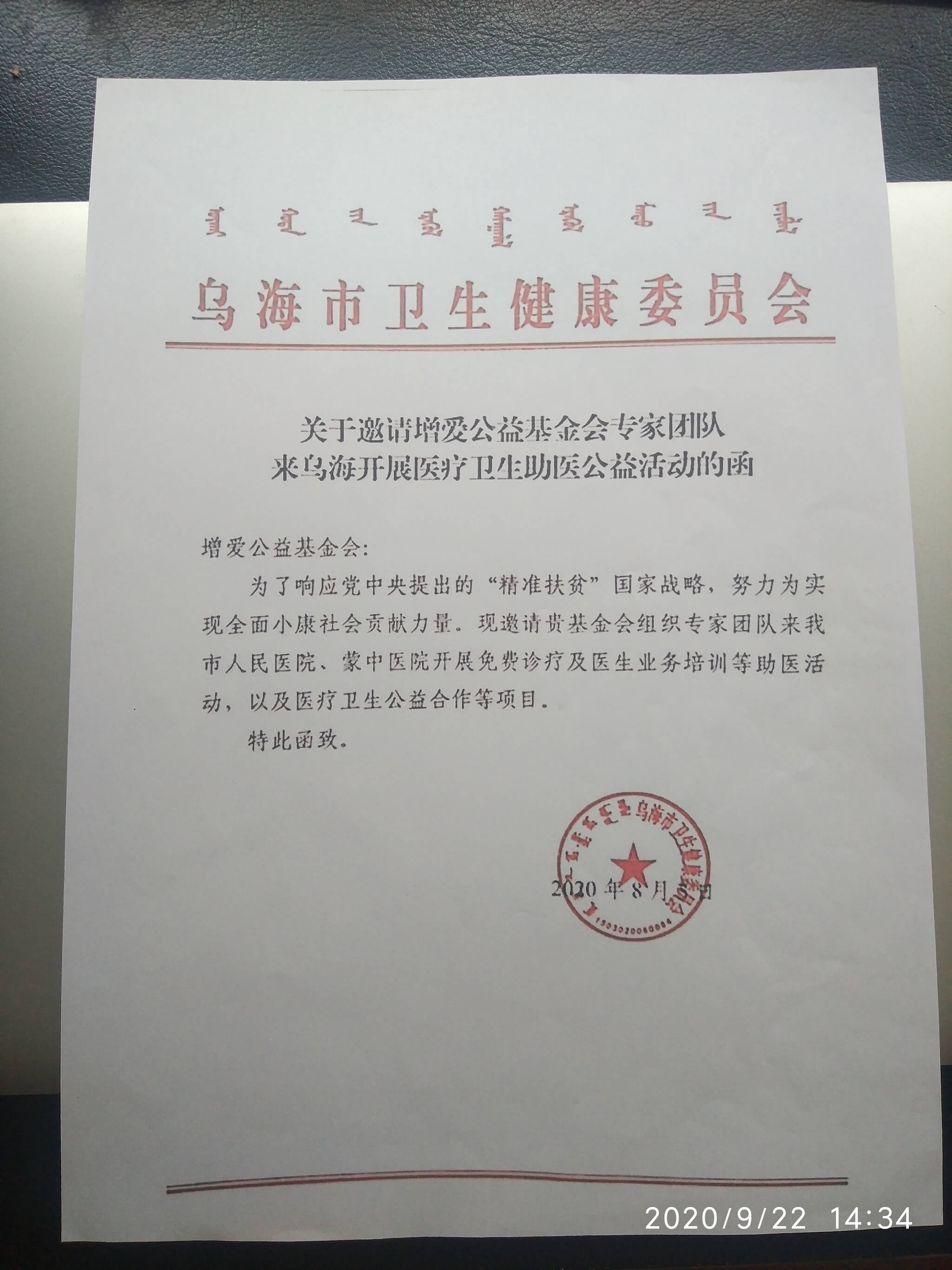 内蒙乌海助医活动受邀函
