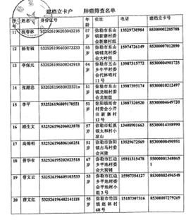 2、2019年12月在弥勒市农村为20名持有低保证或国家建档立卡的贫困户进行低剂量螺旋CT免费筛查,先后对1名患者免费手术;早期人员肺癌筛查及CT检查全部由弥勒第一人民医院负责完成,一共完成20人的肺癌CT筛查及5人因为肺部有问题的患者进行第二次CT检查,费用共计:7500元,报账单位名称:弥勒市医院有限责任公司,开户银行:农行弥勒市支行营业部,开户银行账号:24-069301040003378。其中一人患者(李平)CT检查疑似肺癌,到我们医院(云南新昆华医院)进一步住院检查。报销住院费用:4897.35元,报账单位名称:云南昆华医院投资管理有限公司,开户银行:中国建设银行昆明祥云支行,开户银行账号:53001875036051004524。