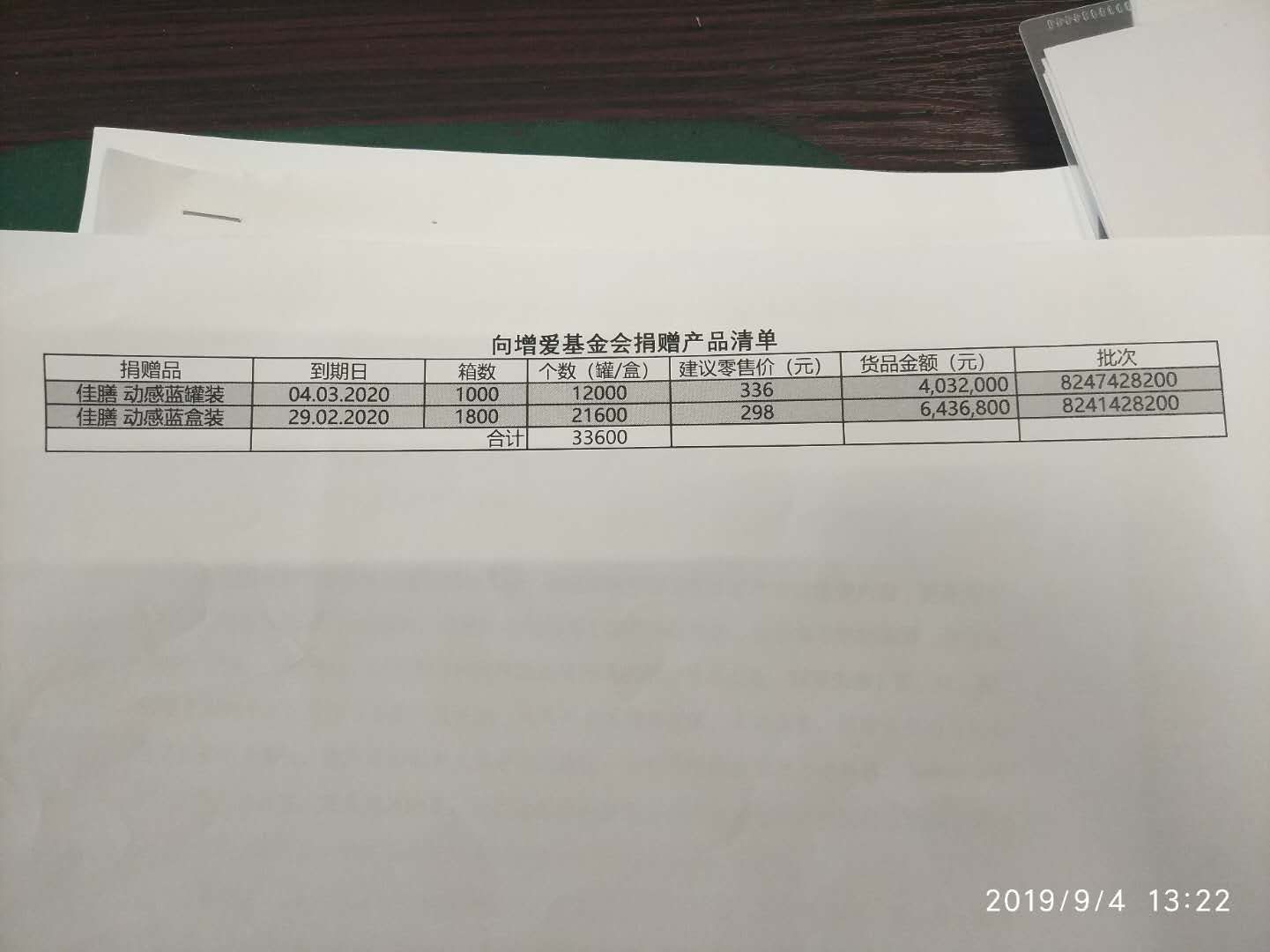 雀巢蛋白粉捐赠项目产品清单(2019)