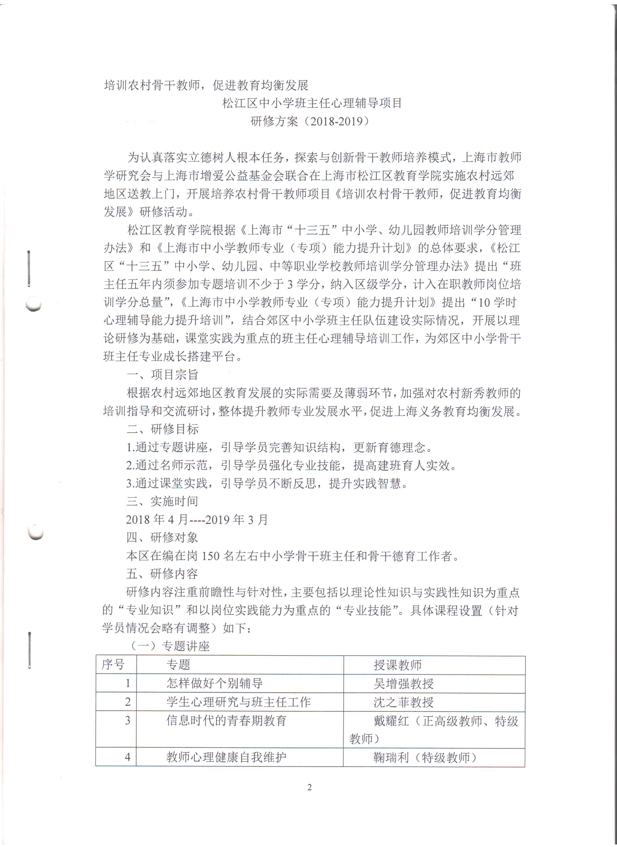 远郊农村教师培训2018年(第二期)中期培训材料松江区研修方案