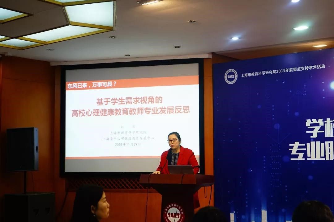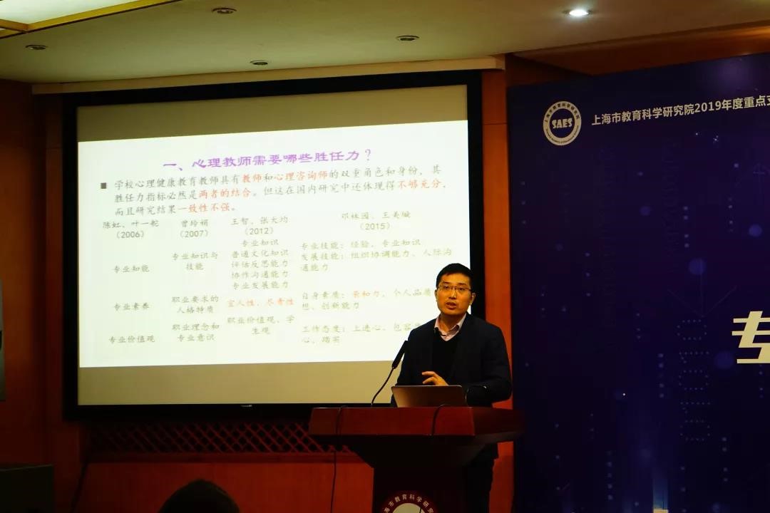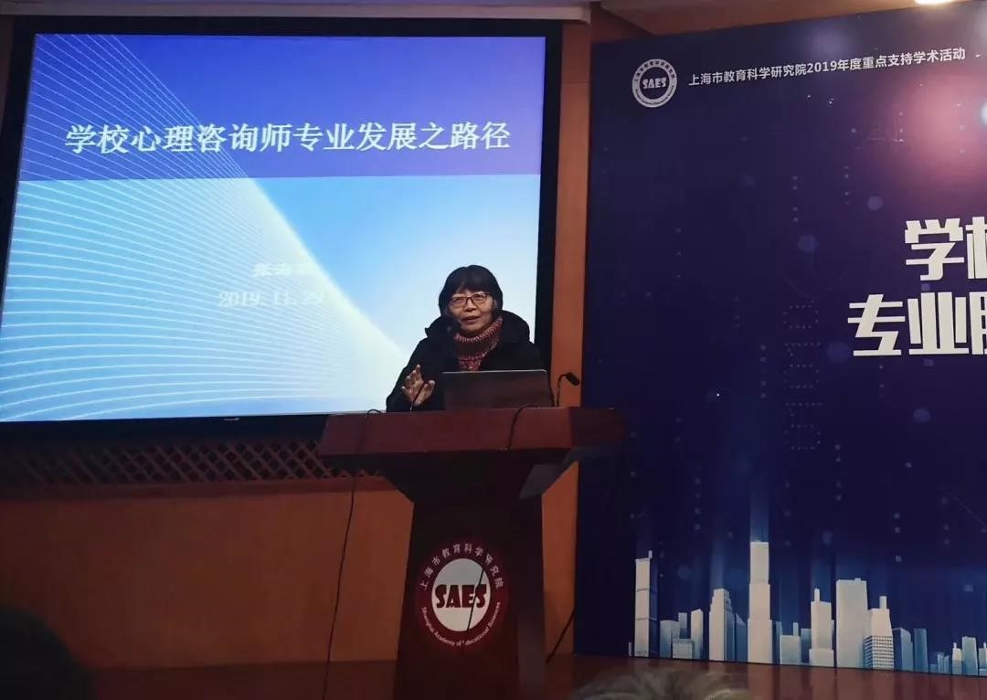 2019年11月29日,为深入贯彻落实教育部、上海市教委关于进一步加强学校心理健康教育教师队伍建设的相关文件精神,着重探讨学校心理健康教育教师的胜任力现状、标准及其提升路径,为大中小学心理健康教育教师的专业发展提供理论与实践指引,上海市教育科学研究院、上海学生心理健康教育发展中心主办的“从优秀到卓越:学校心理健康教育教师专业胜任力与专业发展论坛”在市教育科学研究院举行,并列入上海市教育科学研究院2019年度重点支持学术活动。上海市教育科学研究院院长桑标教授、上海市教委德育处江伟鸣调研员出席,清华大学心理系樊富珉教授、华东师大心理与认知科学学院刘永芳教授、华东政法大学张海燕教授、上海学生心理健康教育发展中心主任李正云教授、副主任沈之菲研究员、吴增强研究员等专家出席,做主题演讲或专家点评。上海各高校心理中心主任及专职心理教师,各区德研室主任、心理中心主任、心理教研员、中小学心理教师代表等近200