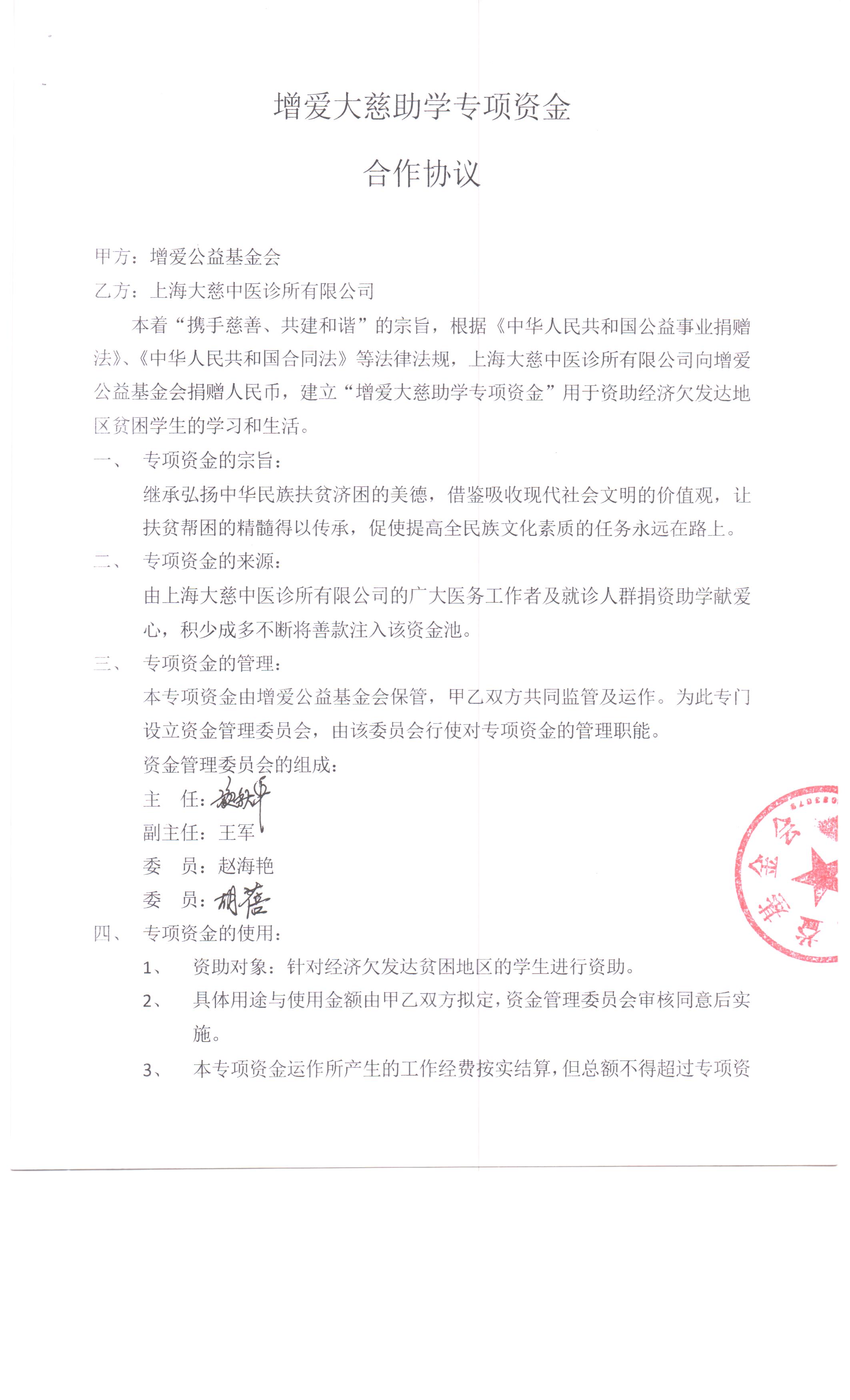 增爱大慈助学专项-助学专项资金合作协议