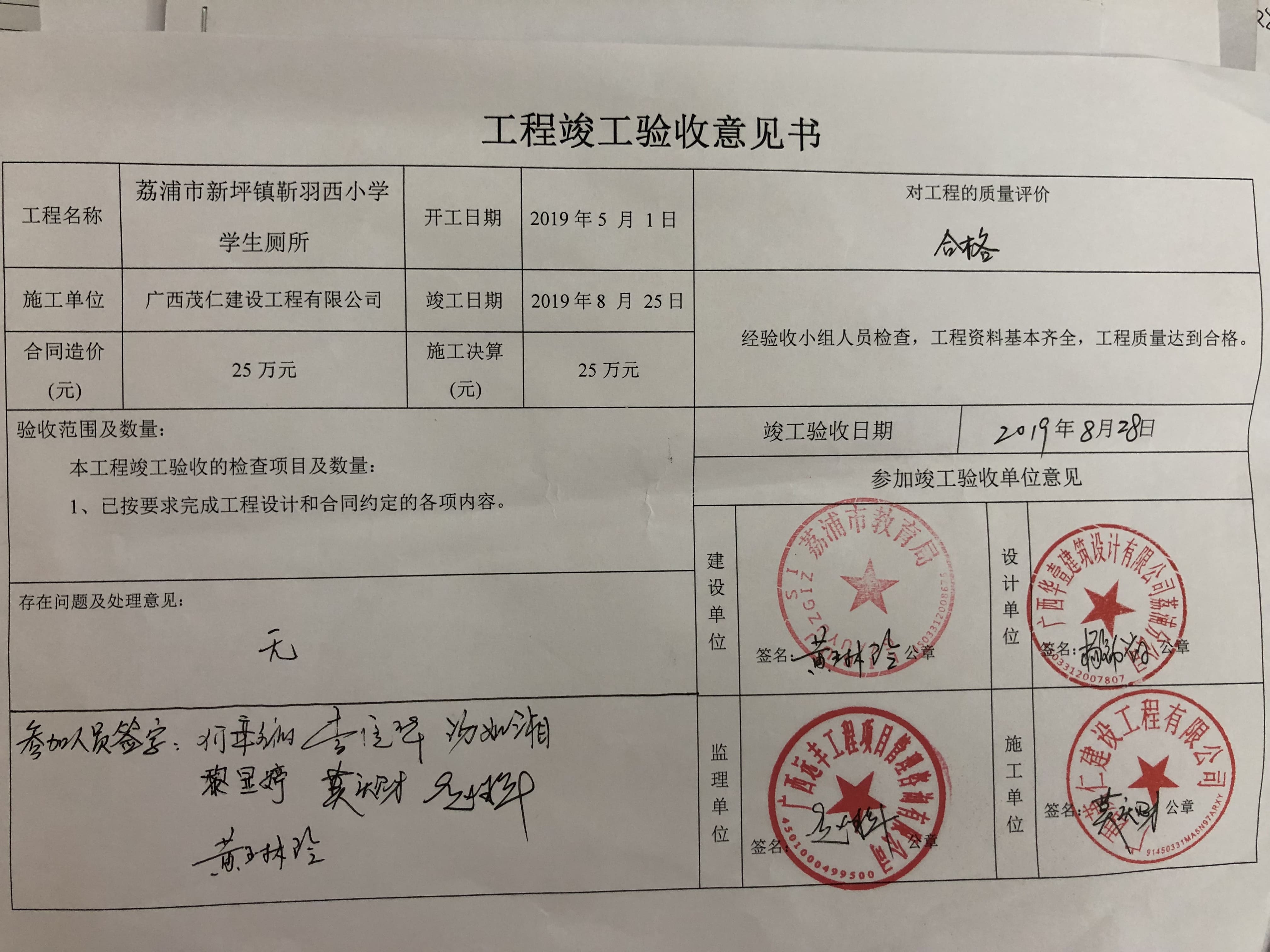 靳羽西扶贫-2019年靳羽西小学扩建竣工验收意见书